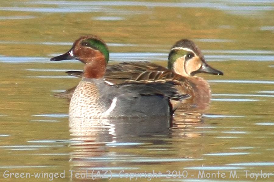 a (found in China Baikal Teal) with an American race of Green-winged Teal (carolinensis) in Gilbert, Arizona